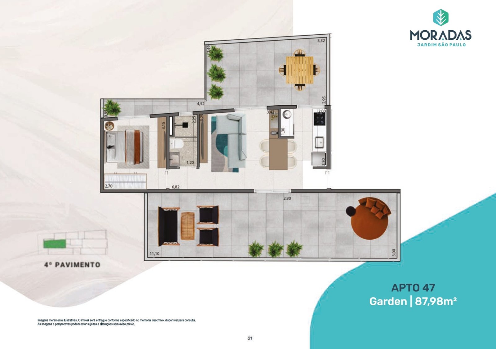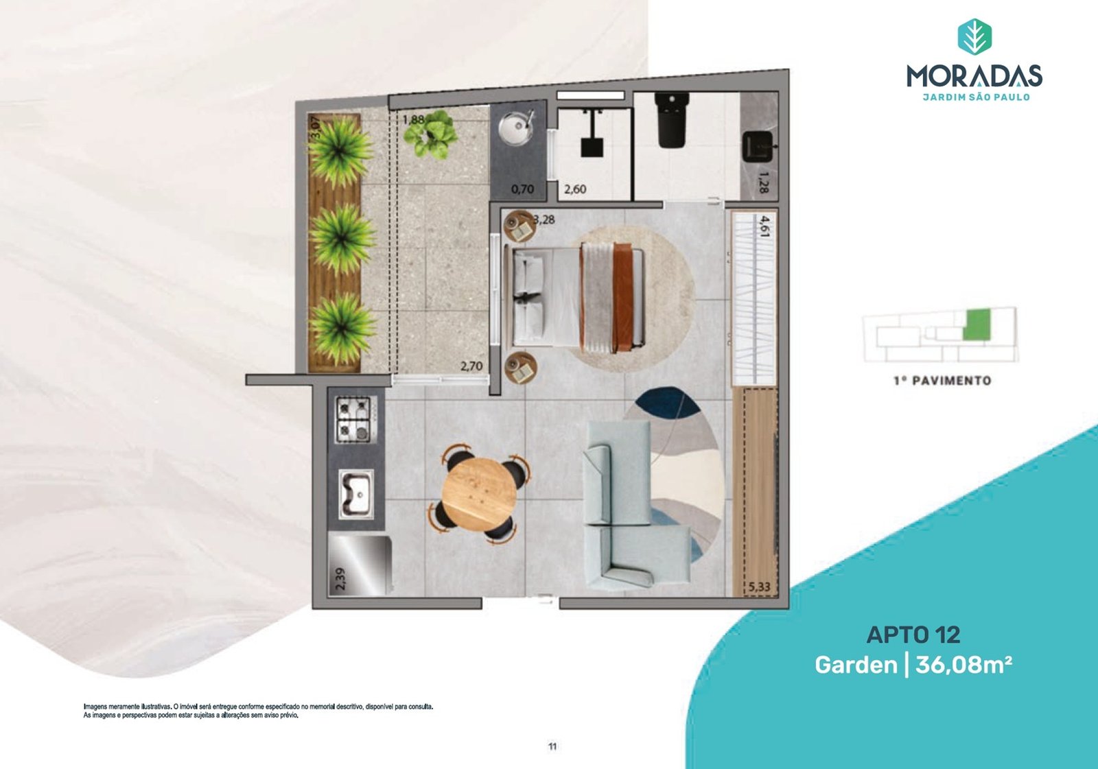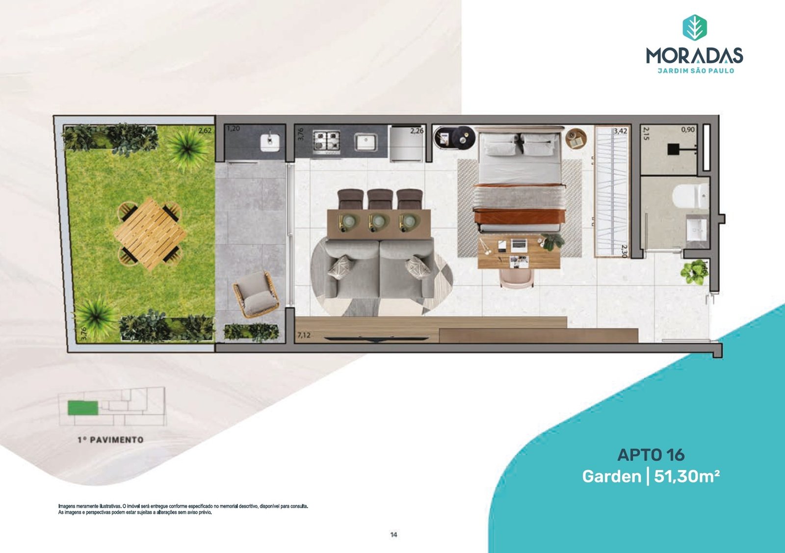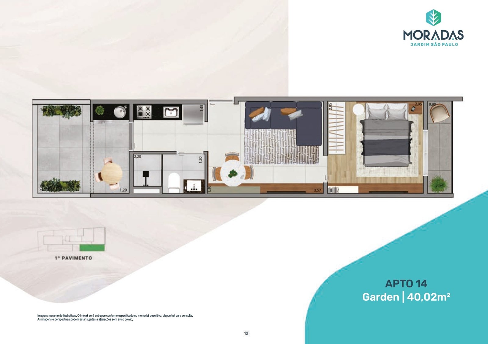 ⁠ Gardens ⁠ são os apartamentos localizados sempre no térreo ou no primeiro andar onde começam os apartamentos. Geralmente possuem a mesma metragem dos apartamentos “tipo”, mas a diferença é que possuem também uma área externa descoberta, como se fosse um jardim, por isso o nome “garden”.